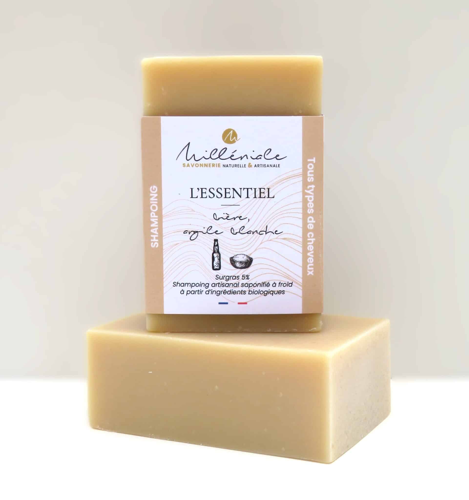 L’Essentiel est un shampoing solide adapté à tous types de cheveux et pour le corps. Fabriqué par saponification à froid, il associe la bière fortifiante et l’argile blanche purifiante, pour un soin doux et efficace. Sans huiles essentielles, il respecte les cuirs chevelus sensibles et convient à toute la famille. 2 en 1, ce shampoing s’adresse également à celles et ceux qui voyagent léger sans compromis sur la qualité et le soin naturel.