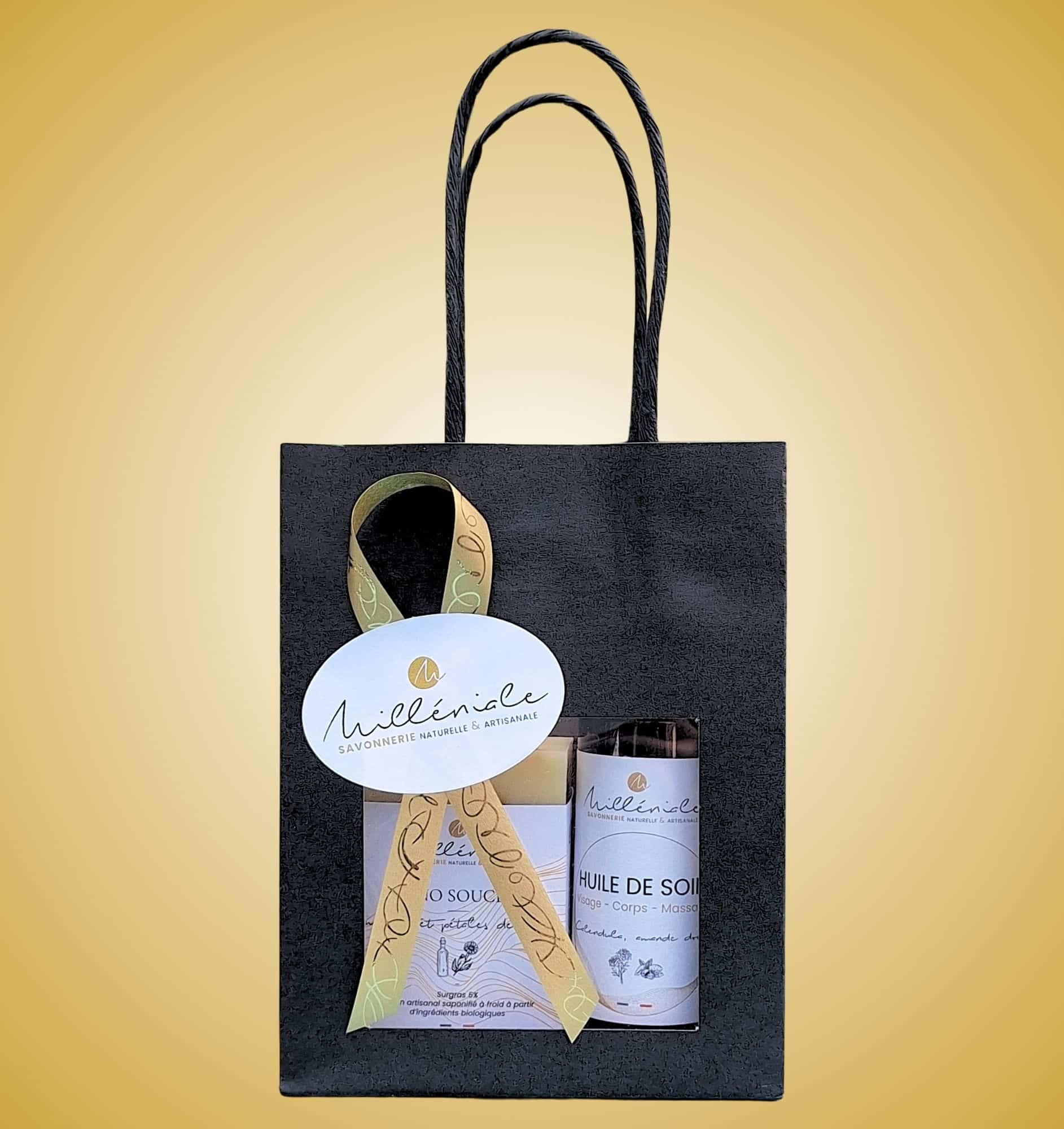 Offrez un instant de bien-être avec notre sac cadeau savon + cosmétique au choix. Ce format compact convient à toutes les occasions : une petite attention, un remerciement ou simplement le plaisir d’offrir. Entièrement personnalisable, il permet de choisir librement le savon et le soin selon vos envies. Ainsi, vous composez un cadeau unique, à votre image ou à celle de la personne que vous souhaitez gâter.